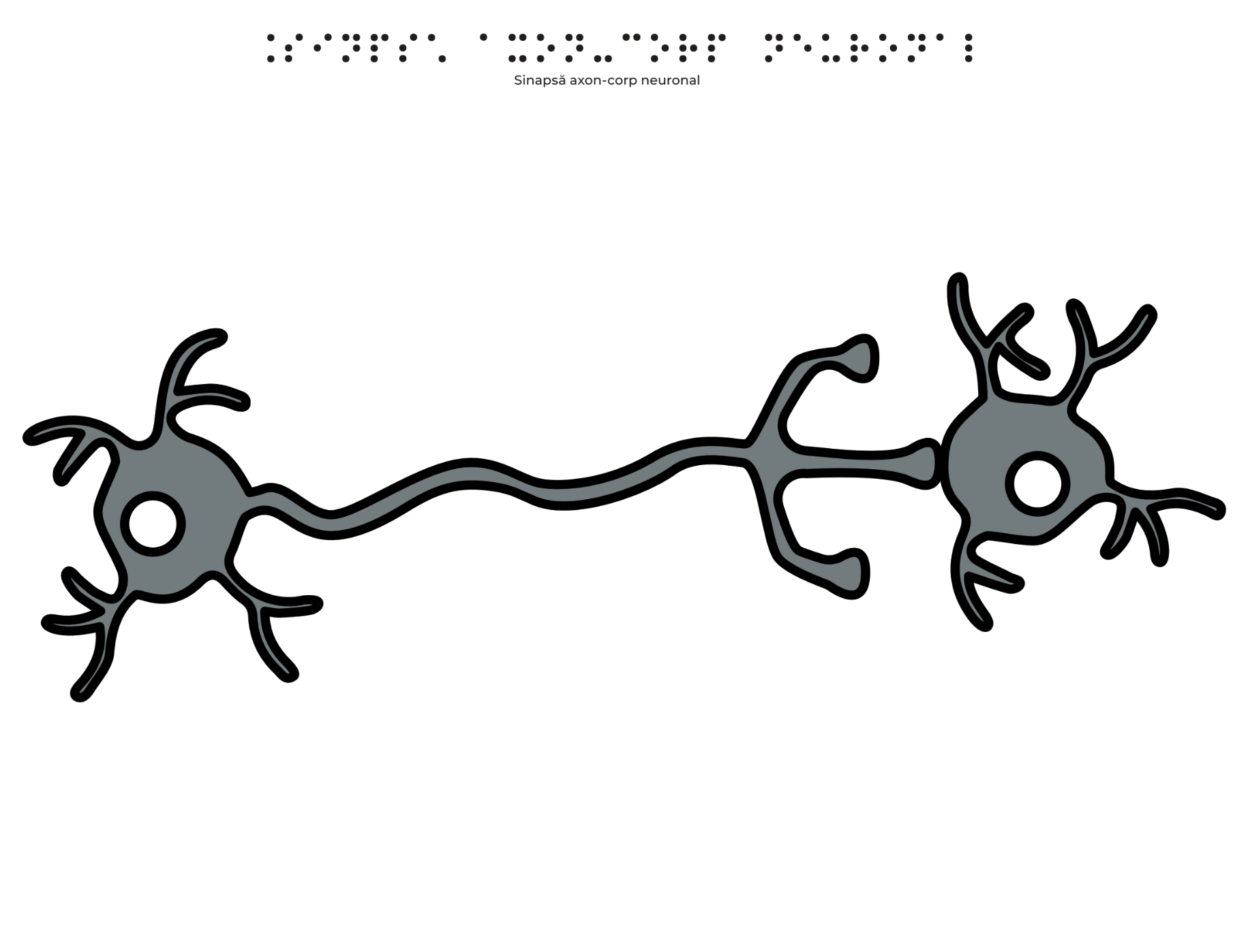 La capătul axonului, în partea dreaptă, se află al doilea neuron. Acesta are de asemenea un corp celular rotunjit, de culoare gri, cu nucleu vizibil, și mai multe dendrite care se extind în diferite direcții. Axonul primului neuron se conectează direct la corpul celular al celui de-al doilea neuron, ilustrând o sinapsă axo-somatică.