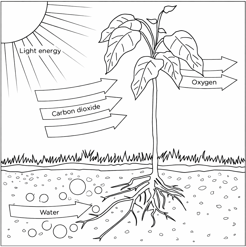 Reprezentare schematică a procesului de fotosinteză.